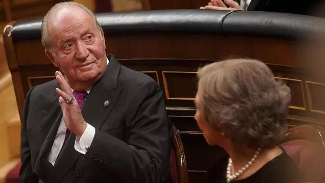 El rey Juan Carlos I saluda en el Congreso en el 40ª aniversario de la Constitución. / JOSÉ LUIS ROCA